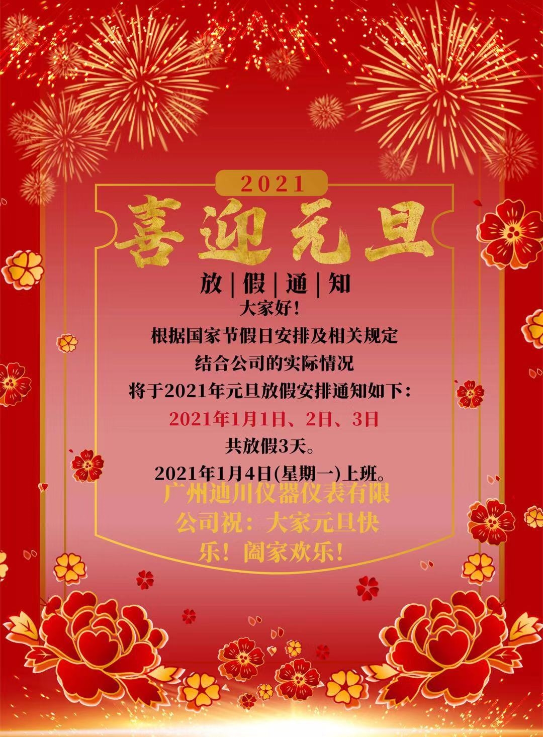 2021年元旦假期将至(zhì),首先向全體員工(gōng)緻以節日的問🤩候(hou)✍️,爲🤟了🈲度過‼️歡樂、祥(xiang)和、平安的節日,特(te)提醒全體人員注(zhù)意以下幾點:
